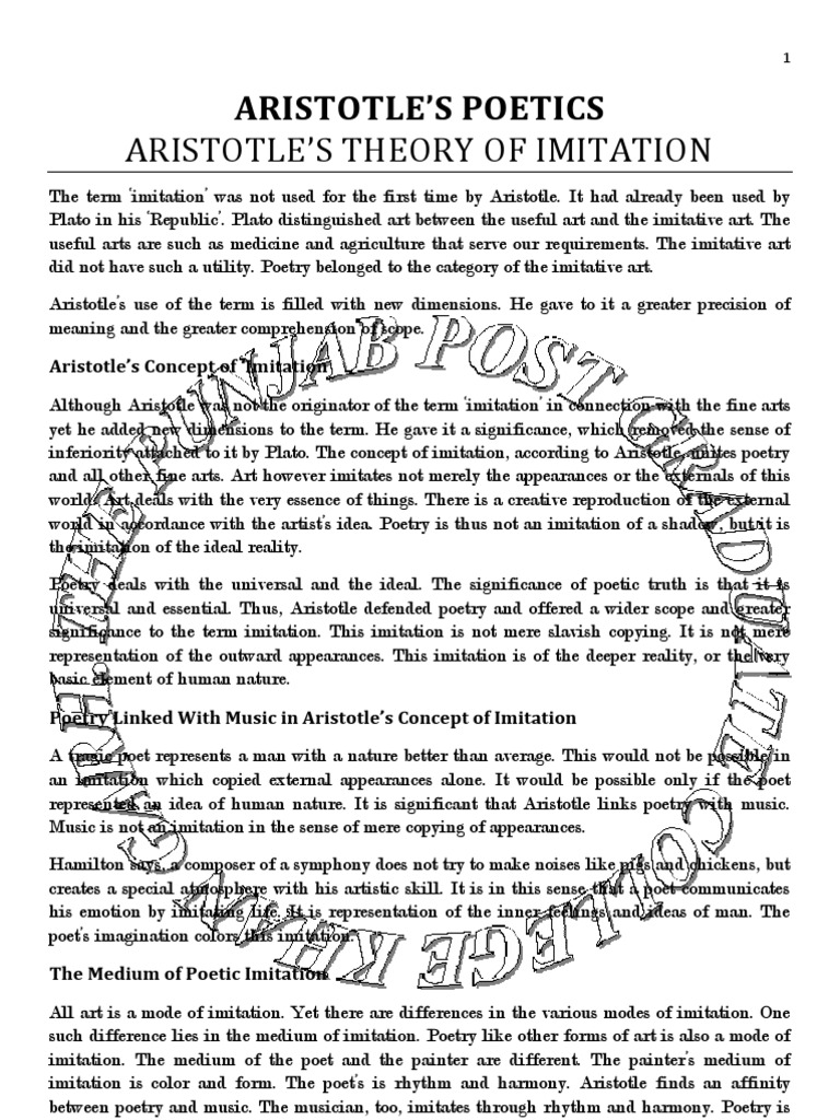 Aristotles Poetics Concept Of Tragedy Aristotle S Poetics In Hindi With Notes Pdf Youtube